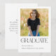 Custom-designed graduation announcement card featuring classic modern style typography with simple layout design.
