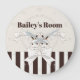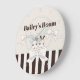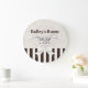 The product design features bunny twins and off-white ribbons. This adorable animal cartoon with stripes makes a cute, classic modern, and unique clock with personalized text for nursery, kid's room, and more!