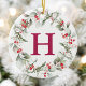Classic Monogram Berry Wreath Christmas Ceramic Ornament