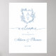 Elegant calligraphy dusty blue floral monogram crest wedding classic welcome poster.