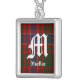 Stylish necklace done in the green, red, and blue traditional clan MacRae tartan plaid pattern. A large white single letter monogram with smaller custom white text under it, decorates the middle of the plaid pattern. Personalize to change the monogram and or the text to suit your needs.