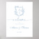 Elegant calligraphy dusty blue floral monogram crest wedding welcome sign.