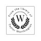 This classic book stamp features a stately laurel design encircling a monogrammed initial. "From the library of" curves around the top of the traditional monogram, and the custom name curves around the bottom.