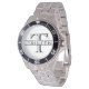 Has heft and feel of expensive stainless steel quartz watches. Good band with safety catch. I removed links, which is easy because engraved arrows show direction to push the linking pins. As always by this seller, the image (a railroad logo) is a perfect reproduction of my emailed image, and is precisely spaced and aligned.