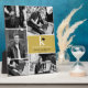 Classic White Monogram With Black Mortarboard On Gold Color Block, Five Multi Photo Collage Modern Graduation Easel Plaque.