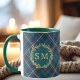 Classic Monogram Gold Wreath Green Tartan Plaid Mug