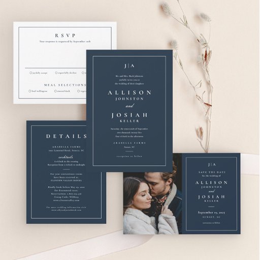 Elegant Navy Blue Wedding Invitations Designed by Stacey Meacham