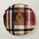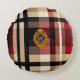 Classic Monogram Stylish Plaid Beige Red & Black Round Pillow