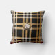 Classic Monogram Stylish Plaid Grey, Black & Beige Throw Pillow