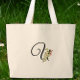 Classic monogram U red white flower mother gift Large Tote Bag