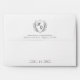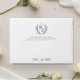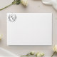 Minimalist black and white wedding envelope featuring a vintage-inspired monogram crest. The fine line art design is accented with graceful leaves on each side, creating a timeless and elegant emblem for your special day. Paired with classic typography, it's the perfect touch of understated sophistication.