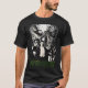 My 11 yo wore adult XL (5’7” 165#). The 8yo is small framed. She wore adult small and tied it in the back. Grandma wore adult large with long sleeve shirt underneath. Tall girl adult medium. Dark haired male adult large. Good quality dark Heather gray, Gildan brand shirt. -it was next up from basic choice and cost about $20 per shirt. Not too thick or thin. Washed and dried well, no major shrinkage. Not see-through. Can wear a bra under it fine. Screen print is just as shown and well done, front and back.