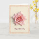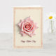 This design shows a large blossom centered on the card, with layered petals shaded from a deeper rosy tone near the tightly curled center to a softer blush pink along the outer edges. Soft, diffused lighting gives the flower a gently raised look, and the shadows tuck in close to the petals like a quiet hug ❤️. The background is a smooth creamy beige that keeps the focus on the bloom while adding a calm, intimate mood. Around the edges, a worn reddish-brown frame creates an aged-paper look, like a keepsake found in a drawer of letters. Beneath the flower, a short message sits near the lower center in deep maroon lettering, with flowing strokes that feel affectionate and close. The text stands out clearly against the pale background, leaving generous space above it so the blossom feels like it’s leaning down toward the words 🌼. The border has slightly distressed corners and uneven texture, with the reddish-brown tone fading softly into the cream.