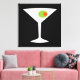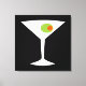 This Classic Movie Martini Stretched Canvas (black) features a black background and the image of a white silhouette of a martini glass. Inside the glass is a glorious green olive with an orange pimento. This is a fun piece of wall art for everyone who wishes they were a character in a classic movie. Shaken not stirred, please!