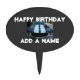 Classic Muscle Car Cake Pick features a photo of a black and white classic muscle car and the words Happy Birthday written in white with a gray background. Easily add a name to personalize it or delete to order it without a name so it can be used for multiple people over and over again.