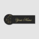Running horse in gold color Name Tag template ideal for horse care, horse training, veterinarian services.