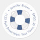 This flexible sticker design features a watercolor blue and white life ring surrounded by a circular text border. Shown here for a return address label but all of the text fields are flexible to your needs eg could be a thank you favor sticker.