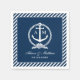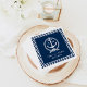 This elegant navy wedding napkin features a rope circle monogram with anchor illustration framing the couple's initials. Names in graceful script and the wedding date complete the design against a rich navy blue background. A refined choice for nautical-themed receptions or destination celebrations. Customize the monogram, names, and date to make it yours.