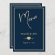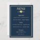 A Classic Navy and Gold Wedding Menu Card designed with gold colored text, borders and heart shaped accent, on a dark navy background. To personalize this elegant card simply insert the Bride and Groom's Name, Wedding Date and your Wedding Menu Selections into our easy template, replacing the sample text. Be sure to view the matching Reception Accessories including: the Wedding Table Card, Seating Place Card, Wedding Guest Book and Banner.
