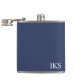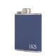 A modern, stylish flask with a blue background and simple white typography perfect for adding your own monogram initials. The perfect, thoughtful gift for someone.