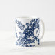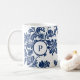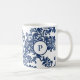 An elegant navy blue damask pattern set against a pristine white background, showcasing intricate floral motifs and graceful curves. This design radiates timeless sophistication and charm.