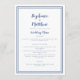 A simple and elegant wedding menu featuring a crisp double frame border in classic navy blue on a clean white background. “Wedding Menu” appears in refined script above a minimalist 5×7 layout that highlights each course with traditional typography. The solid classic blue back adds a timeless, modern touch to rehearsal dinners or formal reception tables. Personalize with your event wording for a polished, coordinated presentation.
