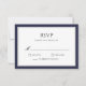 Classic navy blue and grey border RSVP response card. Classic block and script text. Navy blue back.