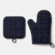 Classic Navy Blue Plaid Christmas Oven Mitt & Pot Holder Set