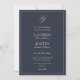 Classic Navy Blue Script Monogram Wedding Invitation
