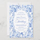 Make a refined first impression with this wedding invitation featuring classic French toile de jouy roses in elegant shades of navy blue, royal blue, dusty blue, and deep blue. Inspired by timeless European floral design, this invitation blends traditional sophistication with modern elegance, perfect for a classic, romantic, or formal wedding celebration.