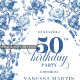 Classic Navy Blue Toile Roses 50th Birthday Invite