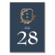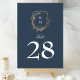 classic navy blue white wedding gold crest table number
