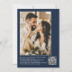 Classic elegant navy blue and white calligraphy script with minimalist plain style personalized QR code photo wedding invitation. This product can be easily personalized. If you need help with the customization of the product or need matching products kindly please contact me via Zazzle.
