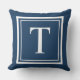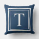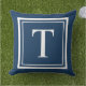 Classic Navy White Square Frame Monogram Outdoor Pillow
