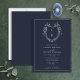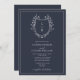 Classic Navy Wildflower Monogram Crest Wedding Invitation