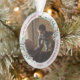 The ornament in oval shape has a classic silver frame adorned with Christmas plants and ribbon to display your own special memory of your new baby. The bright and shiny silver border encircles your photos. The holly, greenery and silk ribbon complete the whole design with a joyful atmosphere of the holiday season. On the back side, the quotes on the edge of the frame show your deep love and pride in being new grandma and grandpa. Easily place your memorable photos in place of the template photo as well as the baby name and year to make your own ones and send them to your friends and family. What a fantastic way to celebrate your first Christmas as grandparents!