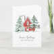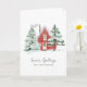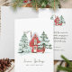 Classic Nordic Winter Red Barn Pine Christmas Tree Card