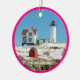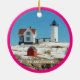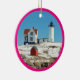 Classic Nubble Lighthouse Ceramic Ornament. Create a Family Keepsake with this Snow Covered Image of Nubble Light. The Hot Pink Red outline gives this Vintage style design a trendy pop of color. Available in Red too.