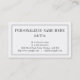 This classic business card design features a name, profession and contact details that can be personalized. It also features a triple-line border. Business cards such as these might be used by a professional such as a graphics designer, an engineer, or a financial planner.
