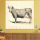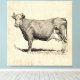 A vintage holstein cow illustrated art print design featuring a beige or tan color classic script background, perfect for anyone who loves farm animals, western art, and antique illustrations!
