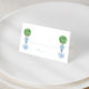Handpainted boxwood topiary ball decorated with a blue bow and in a ginger jar planter. This matches a range of Baby Shower invitation designs but really these place cards could be used for any smart event eg a Baptism reception.