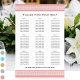 Guide guests to their designated seats with a personalized seating chart. Classic typography and a Greek key border add timeless elegance to your celebration. Inspired by ancient Greek and Roman art, the geometric design creates a stylish, maze-like pattern. This editable template includes a seating plan for up to nine tables, and seventy-two guests. Perfect for a formal dinner party, lunch, brunch, birthday, wedding, or other event. Printed colors: pink and white, with dark gray lettering. Sign layout: 9 tables, 72 guests. Foam board size: 12"x18"
