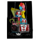 This illustration features a stack of television sets displaying IT's face, "You'll Float Too" quote, with a VHS player atop, balloons, and Georgie's raincoat and paper boat! Get this on a fun graphic t-shirt, poster, or many other customizable Zazzle gifts!