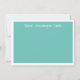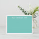 Flat note card in light teal and white with white whimsical and cute trendy calligraphy typography font and wide crisp white border. The card is a light teal color on the front and crisp white on the back.