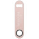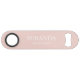 This design features personalized bridesmaid's name and title in white classic serif font style on blush pink background.