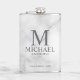 featuring personalized monogram, groomsman's name and title in grey classic serif font style on white marble background.