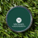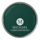 This stylish gift features an emerald green background with an initial inside a white circle. The name and title are written in a classic white serif font.