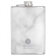 This stylish gift features a white marble background with an initial inside a grey circle. The name and title are written in a classic grey serif font.