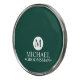 This stylish gift features an emerald green background with an initial inside a white circle. The name and title are written in a classic white serif font.