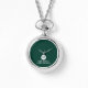 This stylish gift features an emerald green background with an initial inside a white circle. The name and title are written in a classic white serif font.